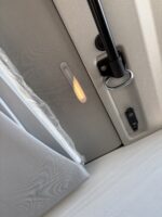 – Table de camping situee dans la porte coulissante et 2 chaises pliantes